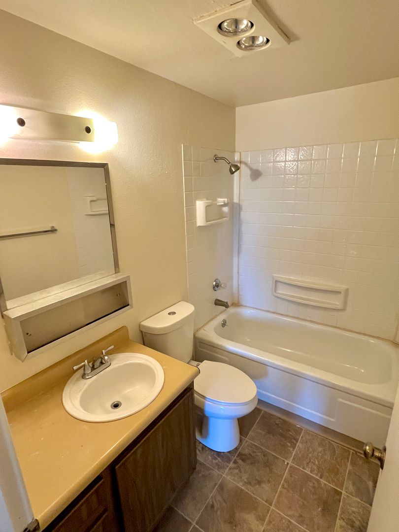 - Full bathroom with a full bathtub and shower