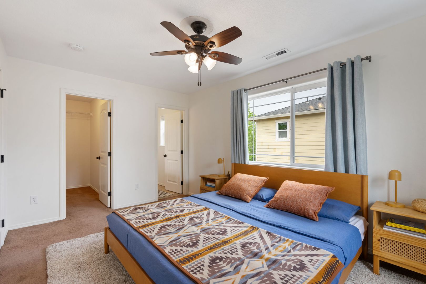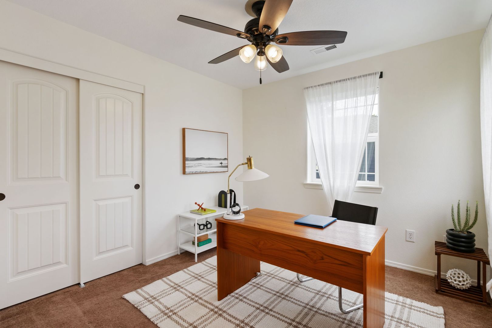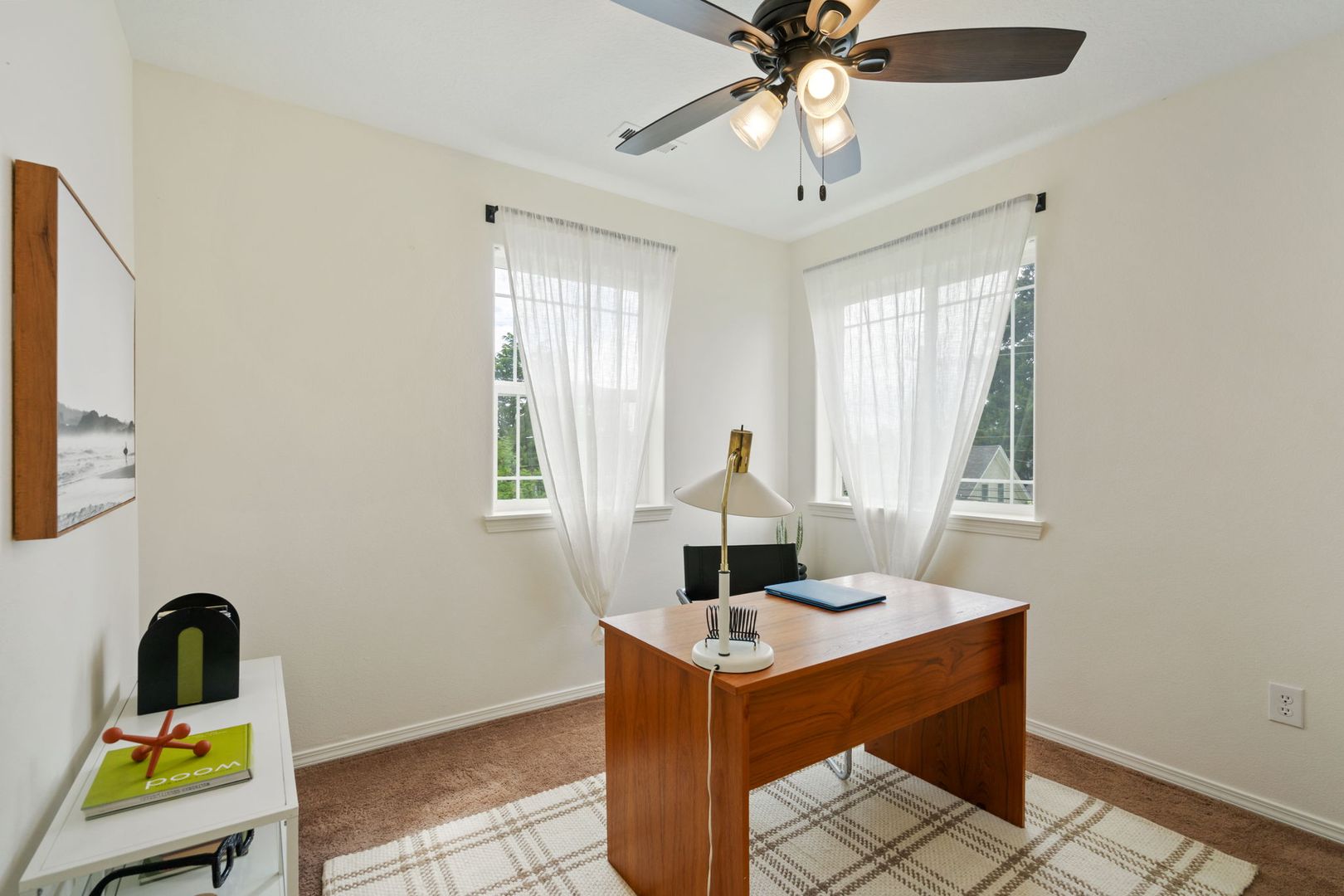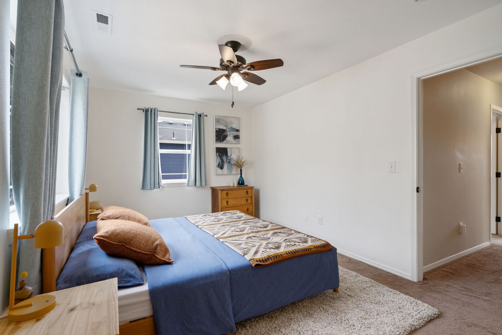 - Carpeted throughout all 4 bedrooms, each with ceiling fans