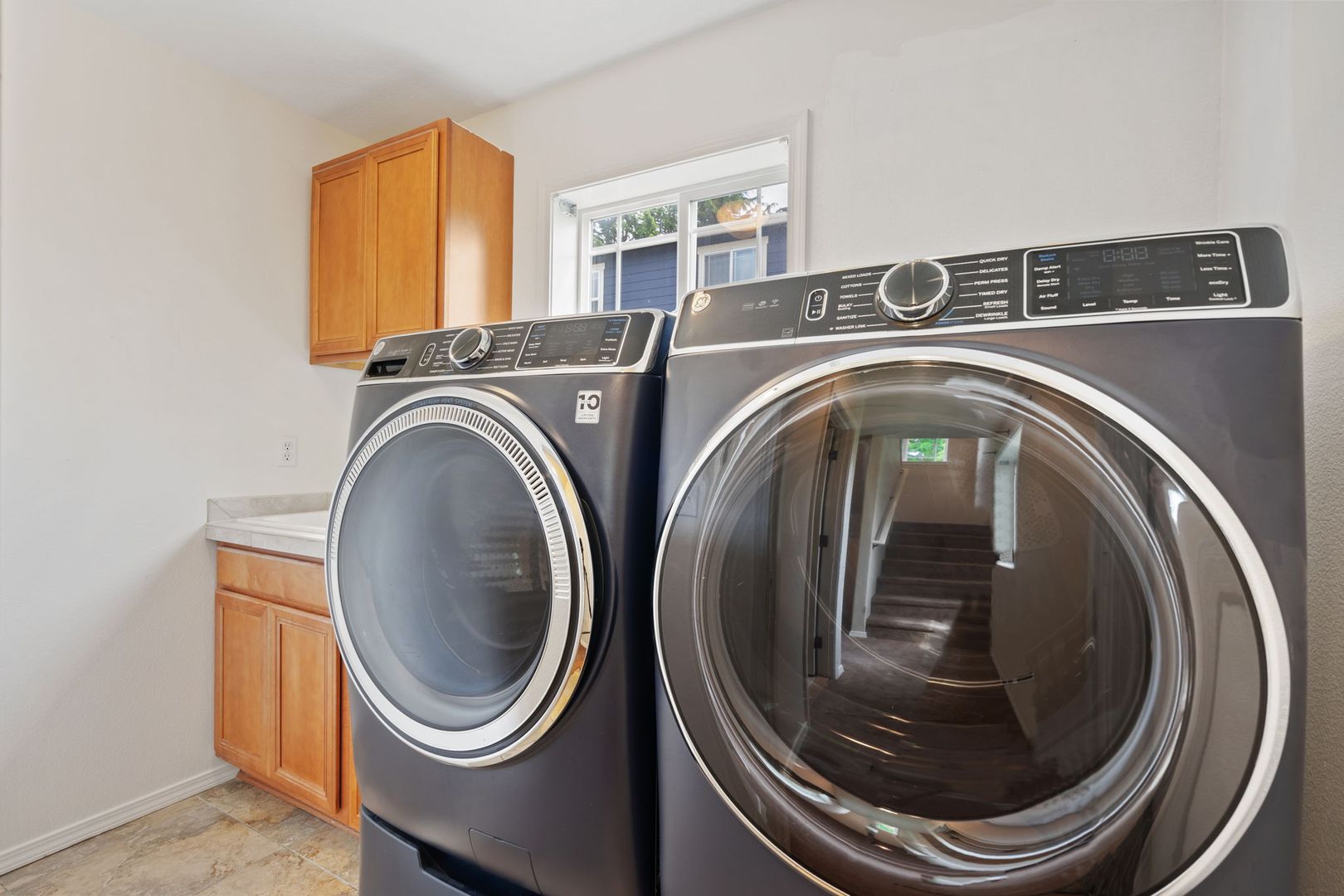 - Utility room with full-sized side-by-side Washer/Dryer (W/D) and utility deep sink
