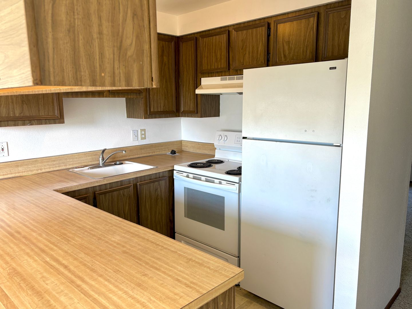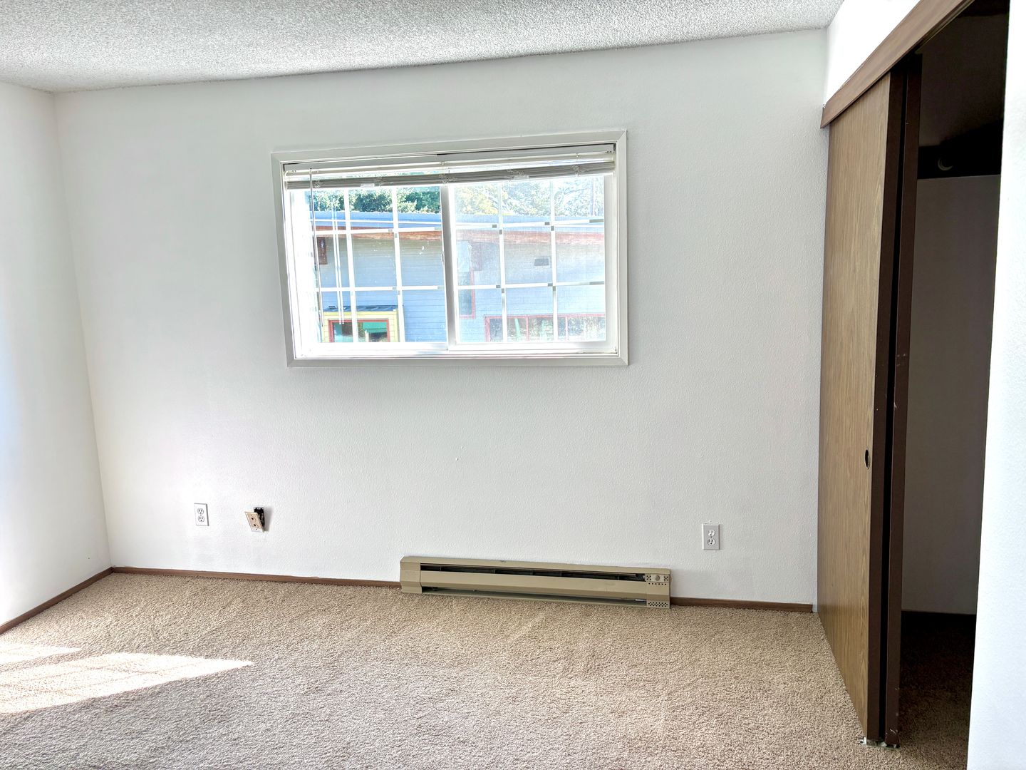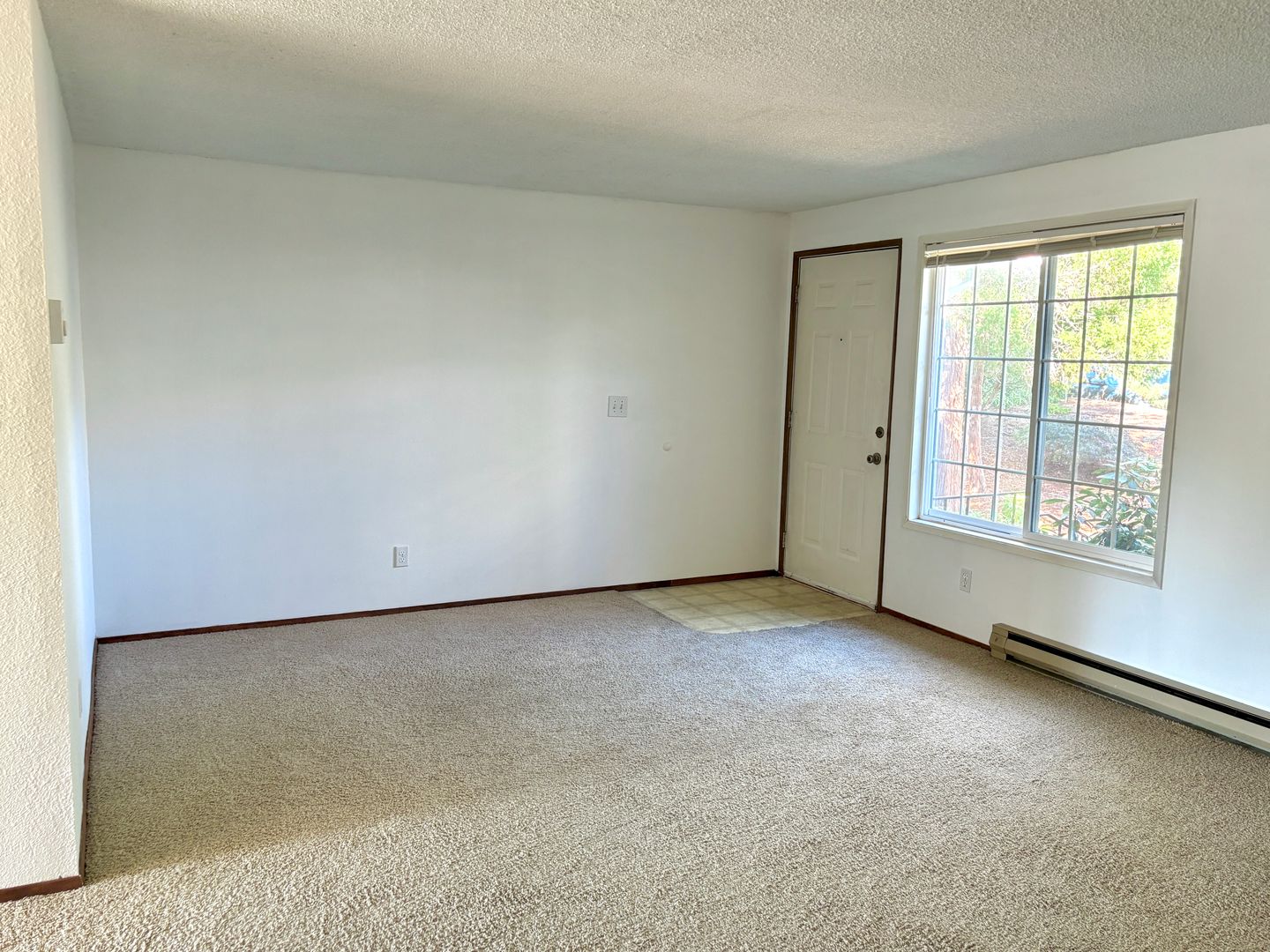 - Carpeted flooring throughout entire apartment, laminate tile in kitchen and bathroom