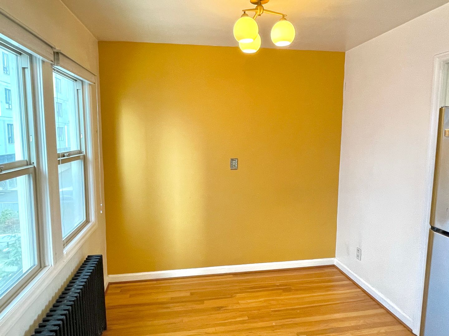 - Dining space adjacent to the kitchen with ceiling mounted light.