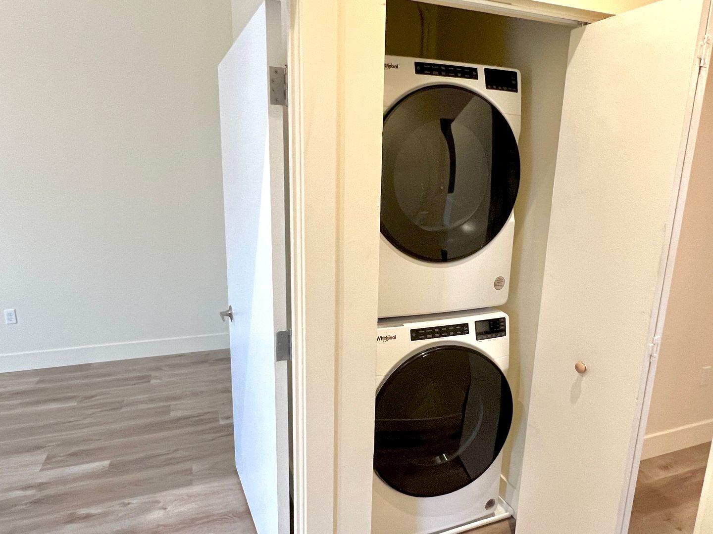 - Upgraded In Unit stackable Washer/Dryer (W/D) in utility closet
