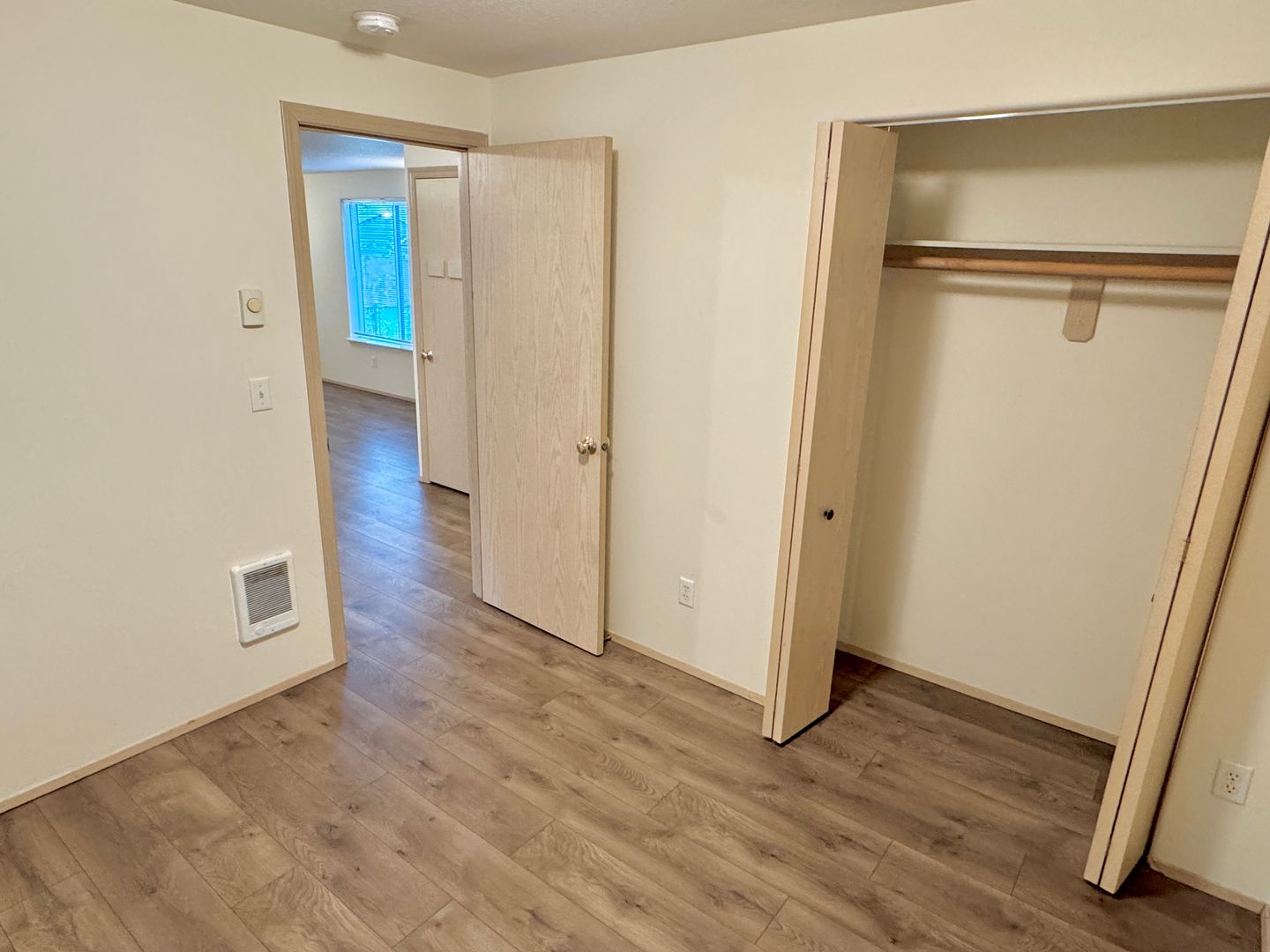 - Bedroom #1, LVP flooring, cadet heating, standard closet