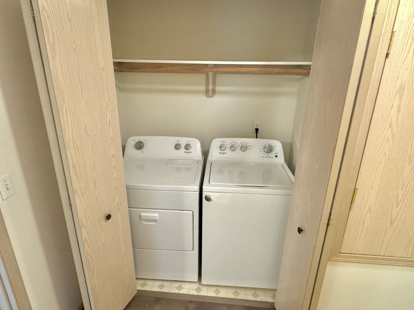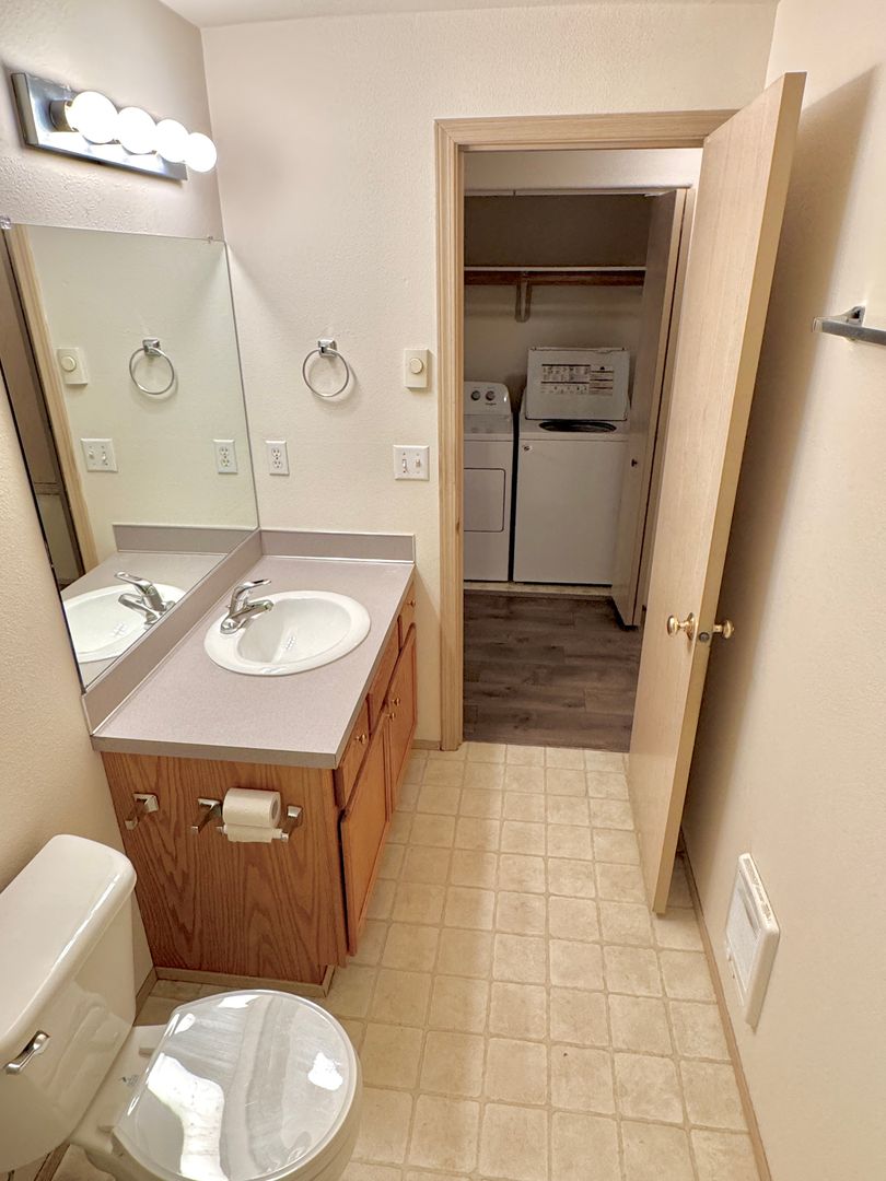 - Utility closet with full-sized side-by-side Washer/Dryer (W/D) and ventilation fan