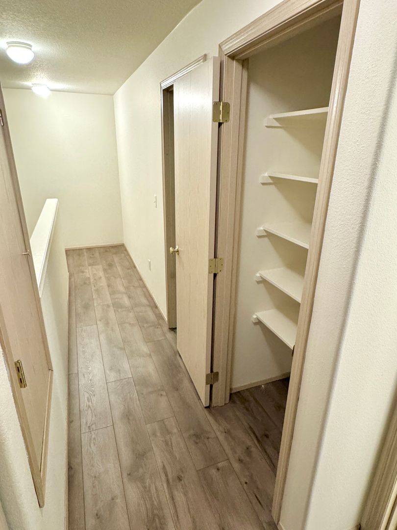 - Large linen closet in hallway