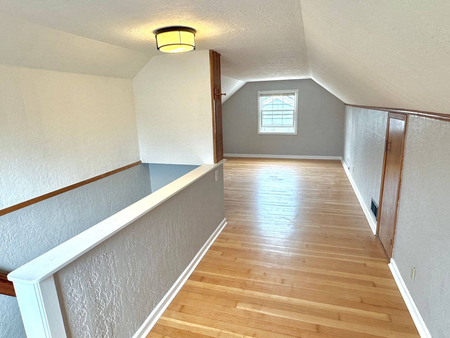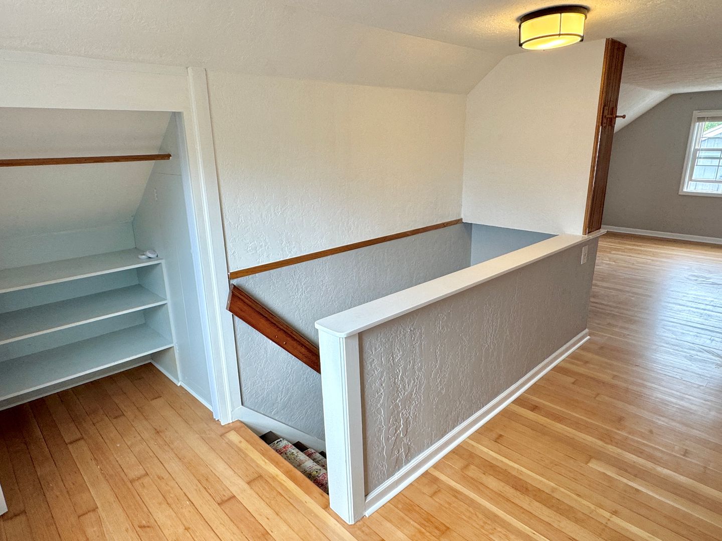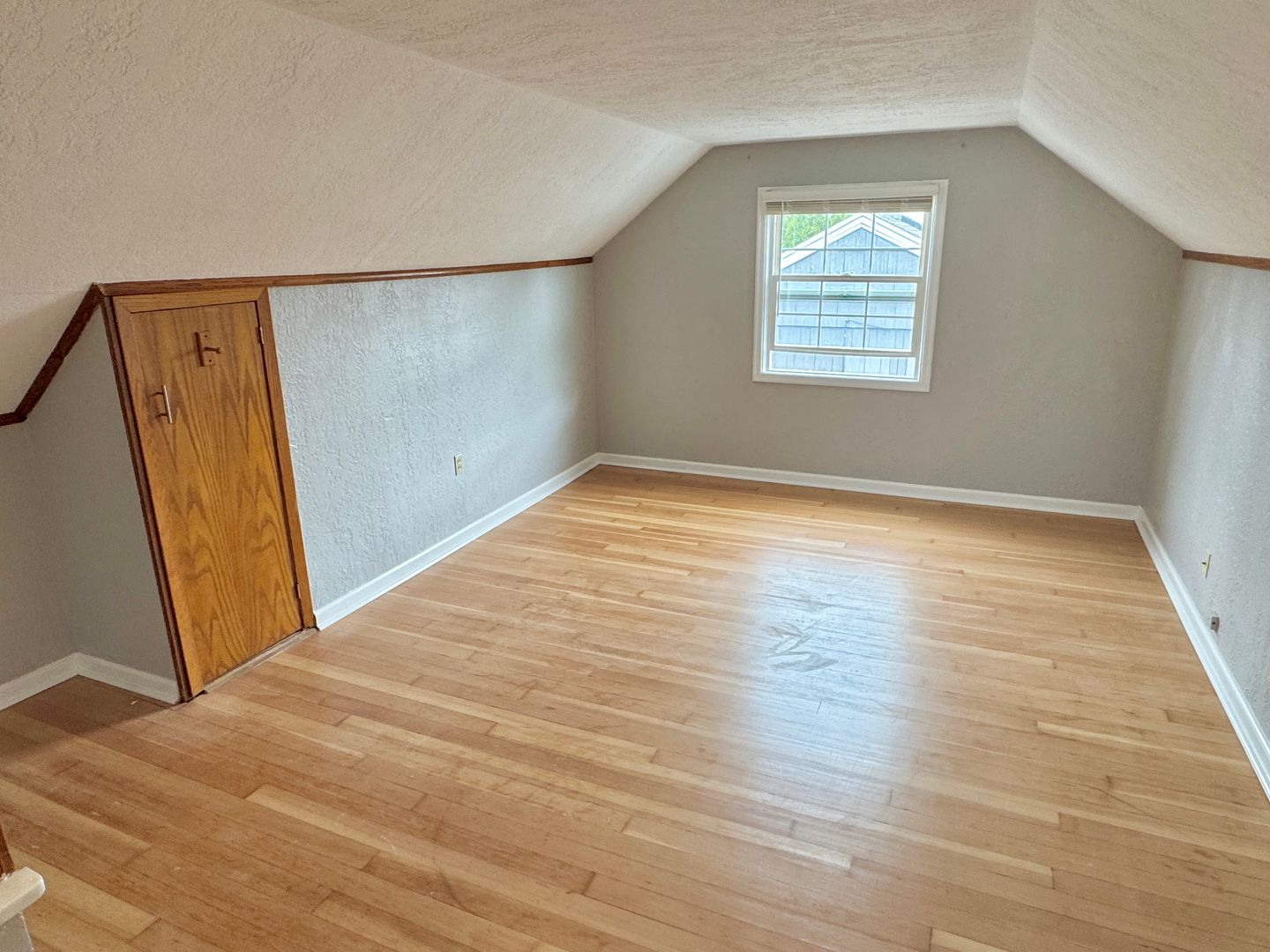 - Fully finished attic bedroom with hardwood flooring, ample built-in shelving and deep closet