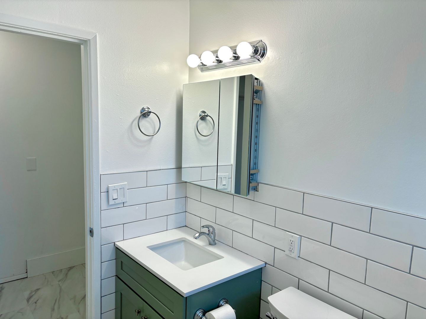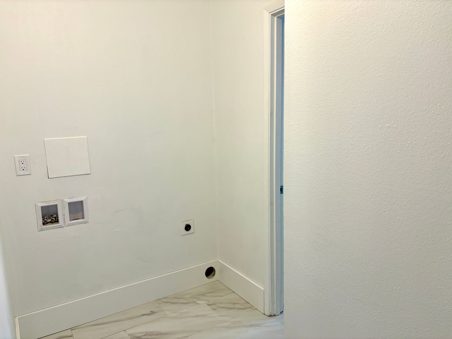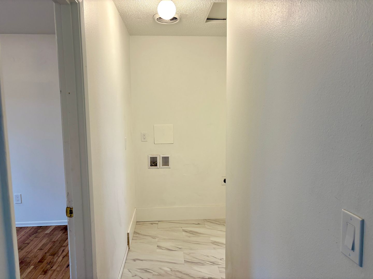 - Laundry hook-ups in tiled floor utility area off of bathroom. Recommend shallow-depth washer/dryer for easy bathroom access