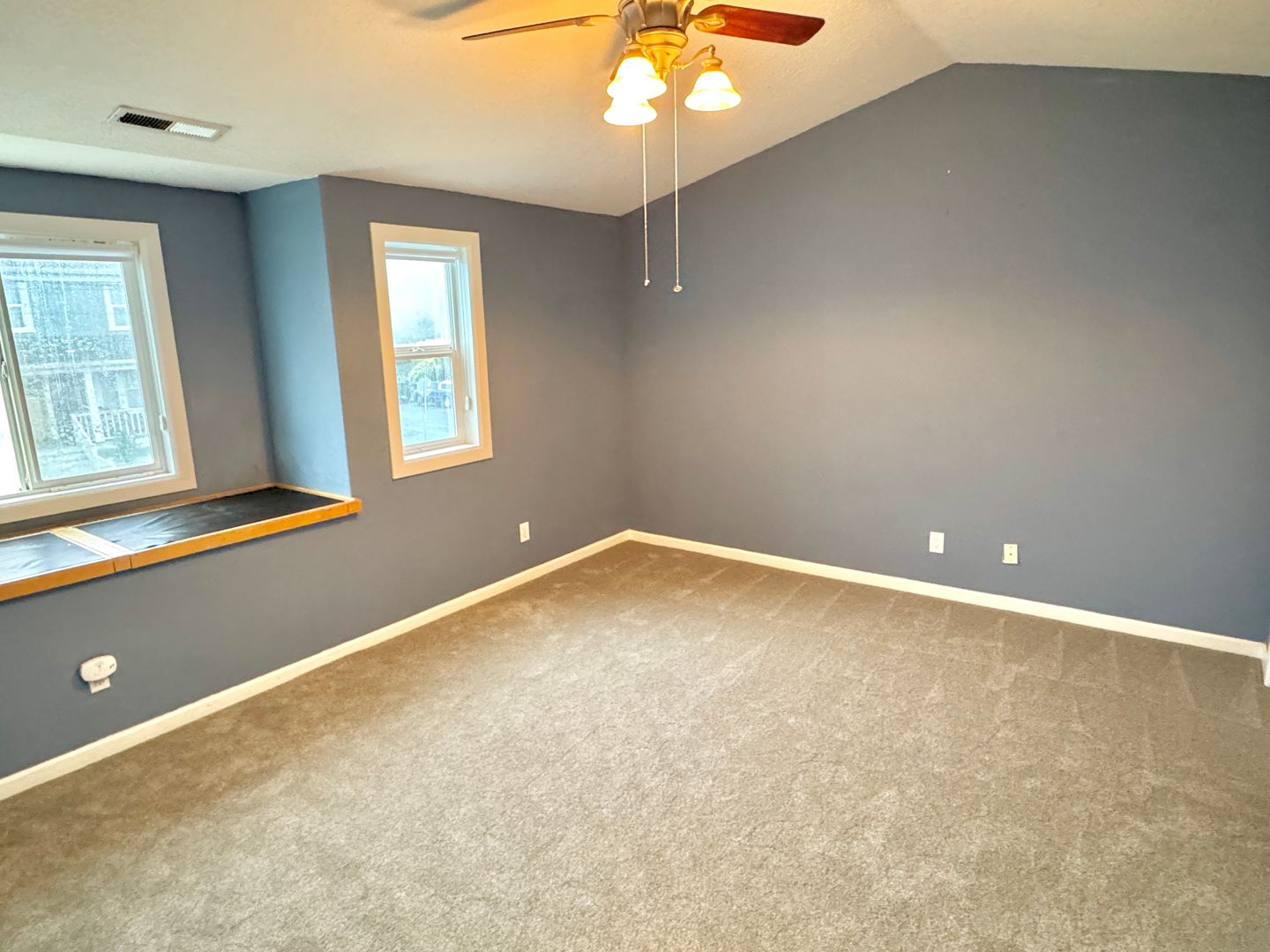 - 3rd bedroom, carpeted throughout, with vaulted ceilings and custom lighting