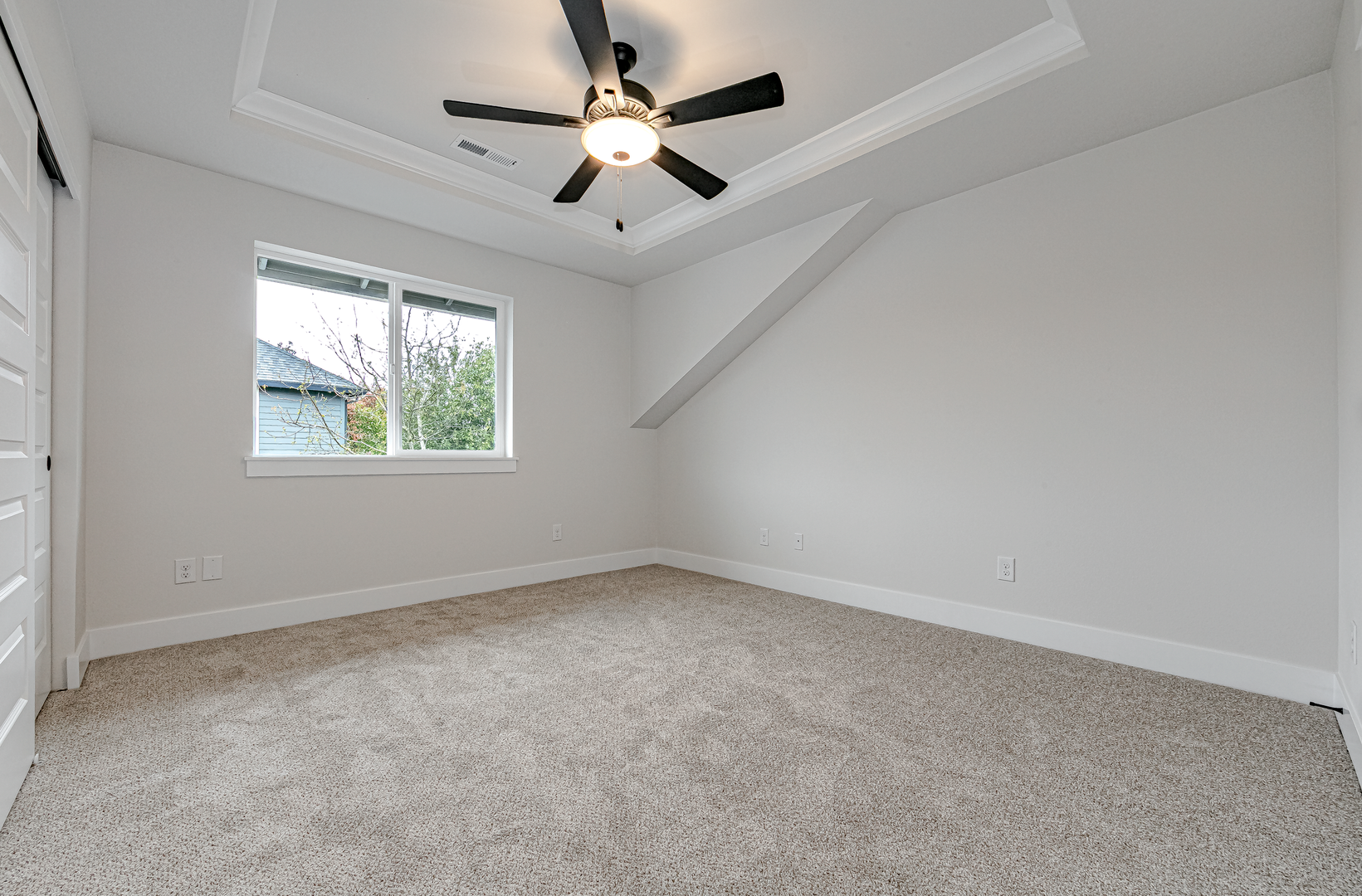 - Bedroom #1 with neighborhood views, ceiling fan, double-wide closet