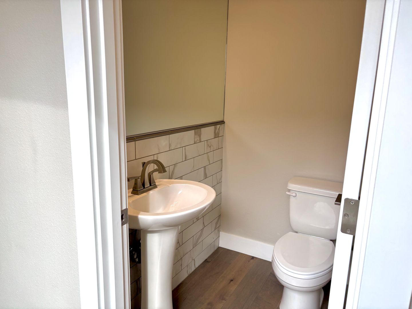 - Attached garage entry in main level hallway, next to 1/2 bath