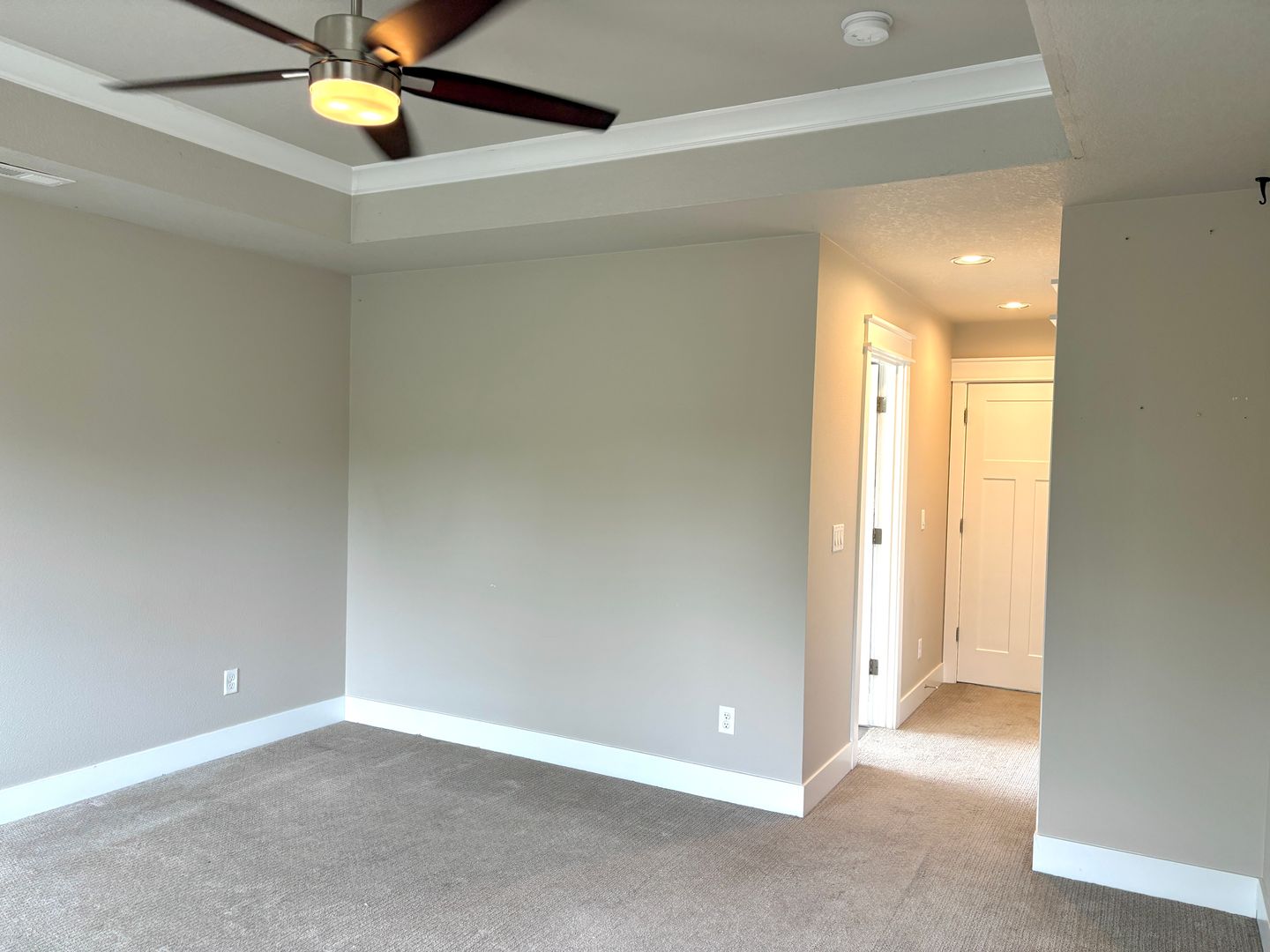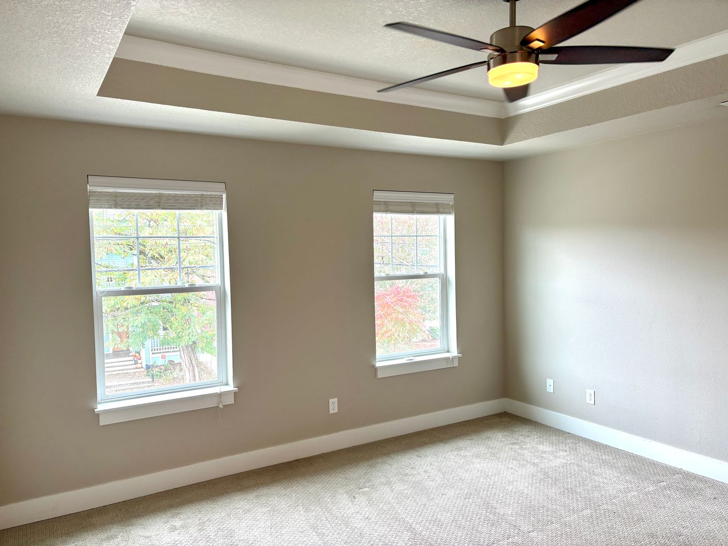 - Main bedroom to the right of stairs features 2-double door closets, and high ceilings complete with a ceiling fan